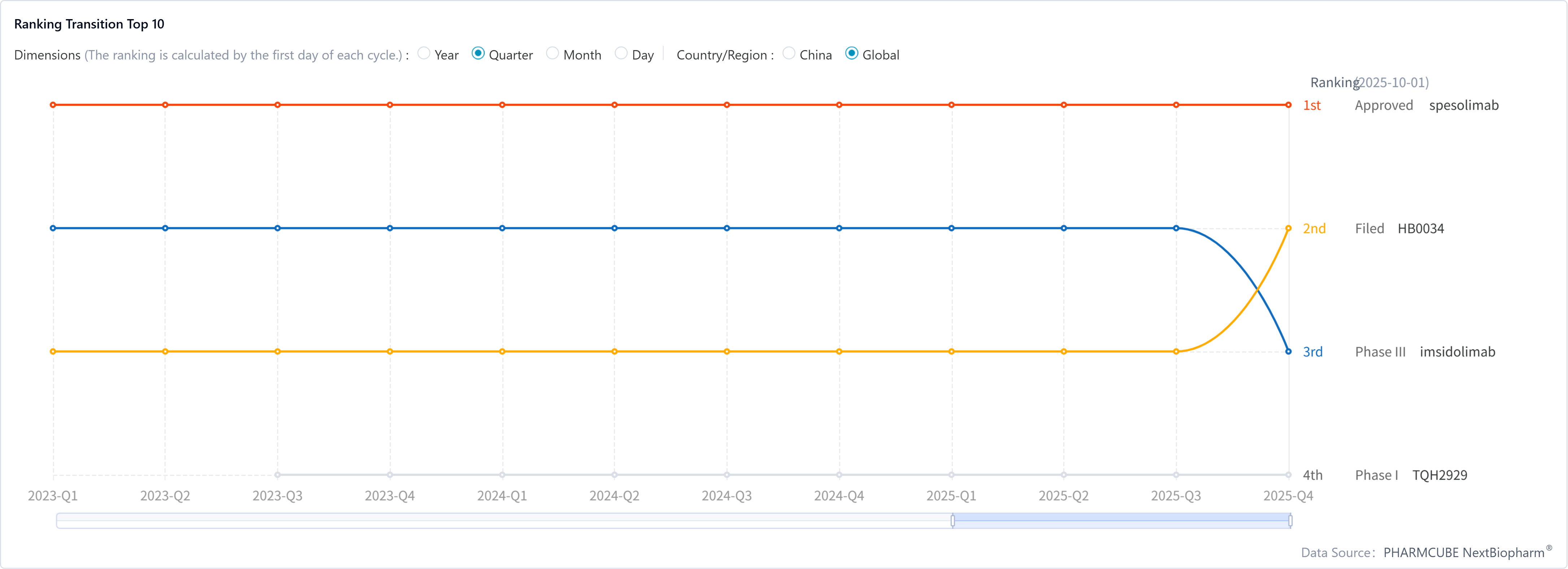 According to PharmCube's NextBiopharm® database, the milestone put HB0034 above other IL-36R-targeting mAbs in clinical stage. Click here to request a free trial for NextBiopharm®.