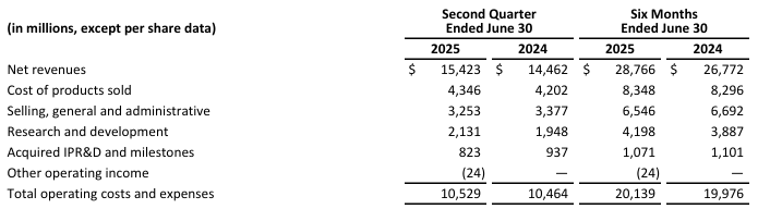 Among newer products, FRα ADC Elahere (mirvetuximab soravtansine), acquired by AbbVie through its USD 10.1 billion purchase of ImmunoGen, generated revenue of USD 338 million (+75.5%) in the first semester. CD3/CD20 bispecific antibody BsAb Epkinly (epcoritamab), approved in the US in May 2023, delivered revenue of USD 121 million (+92.1%) in H1 2025.