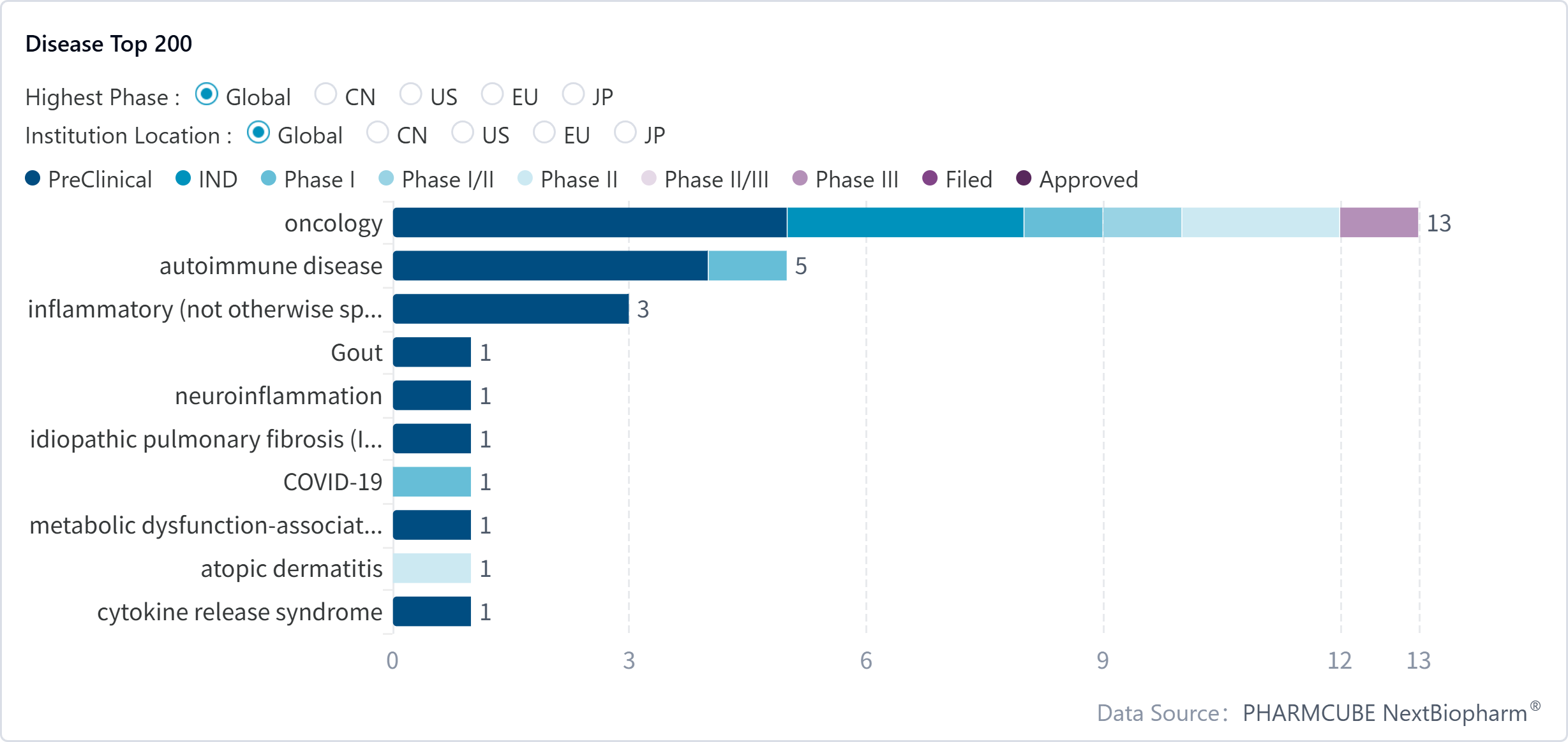 According to PharmCube's NextBiopharm® database, Zenitar's portfolio covers 10 different disease areas. Click here to request a free trial for NextBiopharm®.