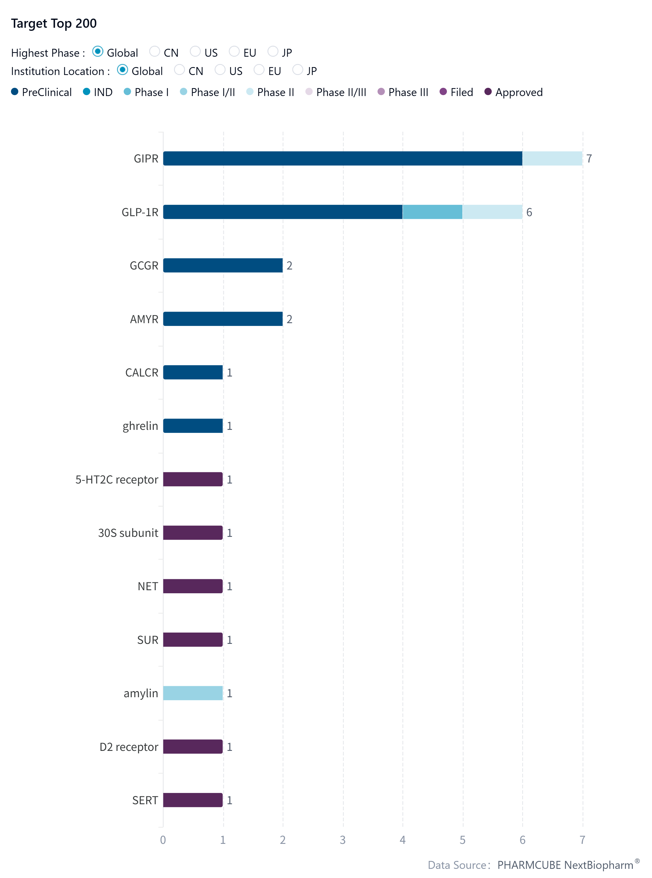 According to PharmCube's NextBiopharm® database, Pfizer currently has 15 obesity candidates in clinical development, with GLP-1R as the second-most investigated target. Click here to request a free trial for NextBiopharm®.