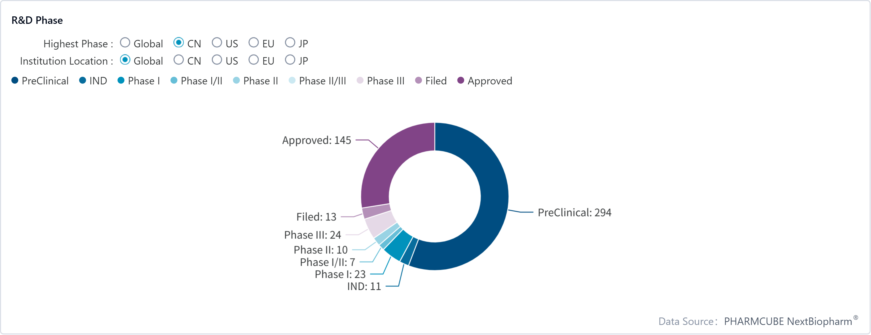 According to PharmCube's NextBiopharm® database, the company holds 145 drug registrations in China, which is comparable to the 161 products launched in Europe. Click here to request a free trial for NextBiopharm®.