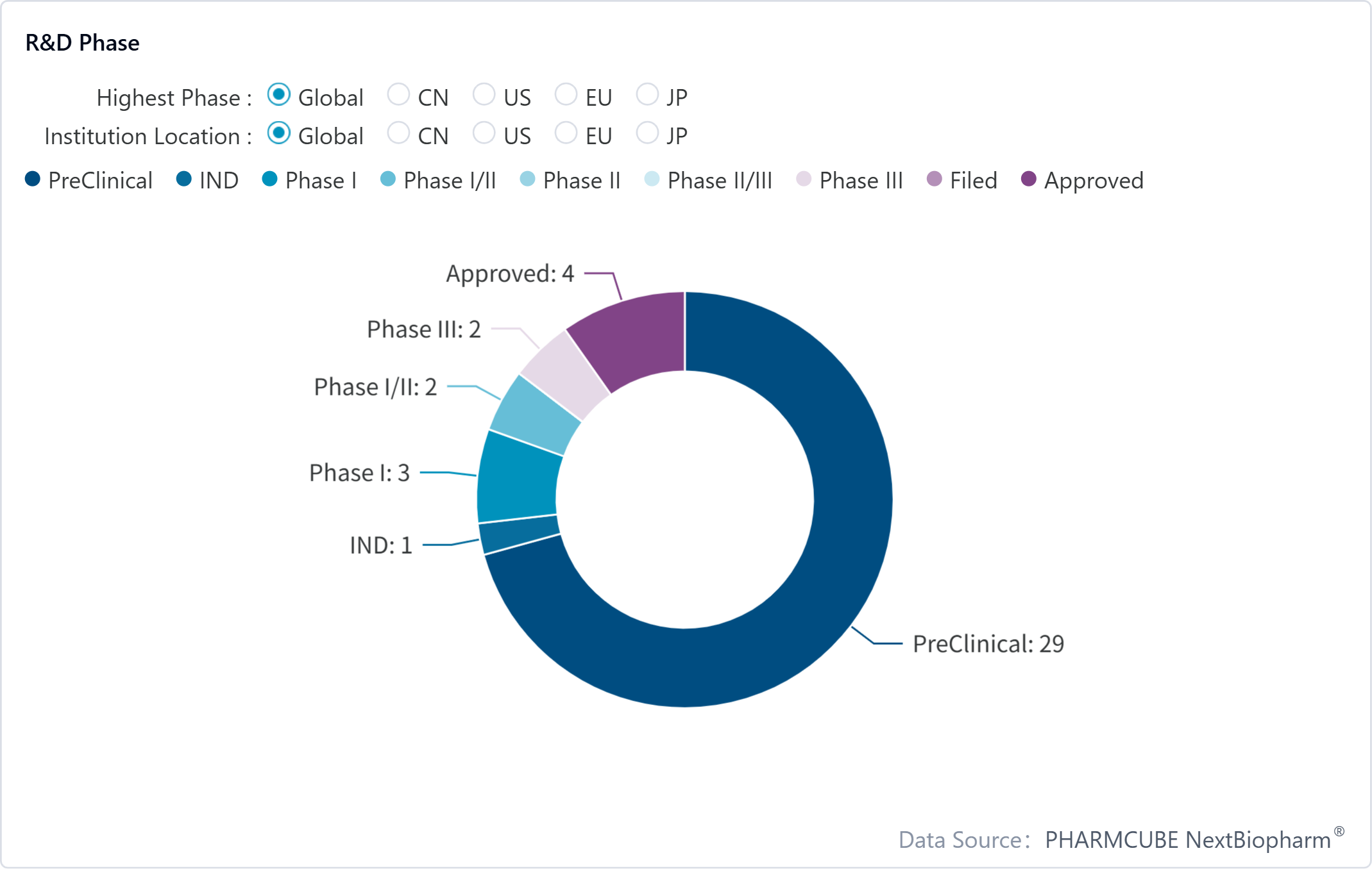 According to PharmCube's NextBiopharm® database, SHR2554 is one of only four EZH2 inhibitors approved globally, among a total of 41 active projects. Click here to request a free trial for NextBiopharm®.