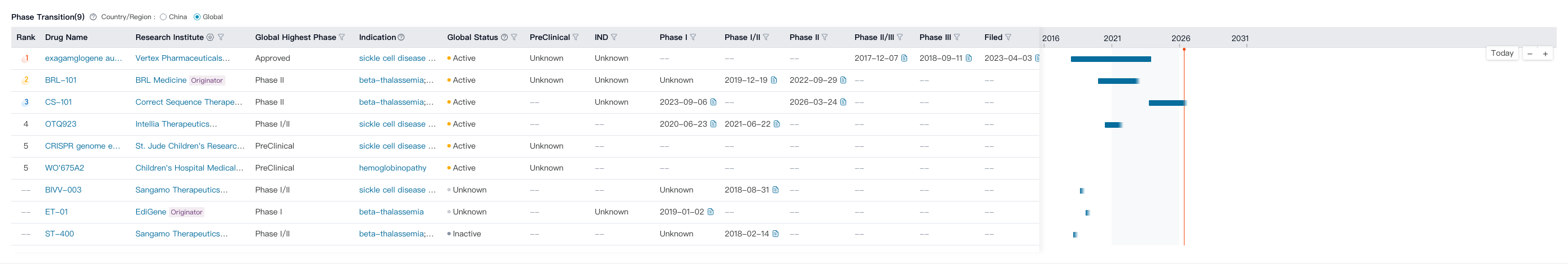 PharmCube's NextBiopharm® database shows that CS-101 is the third-most advanced BCL11A genome editing therapy globally. Click here to request a free trial for NextBiopharm®.