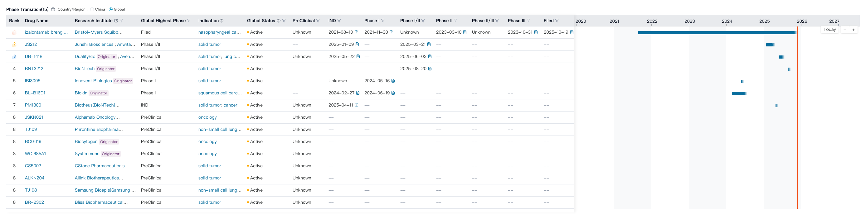 PharmCube's NextBiopharm® database lists a total of 15 EGFR/HER3 bispecific ADC programs globally, led by Biokin's. Click here to request a free trial for NextBiopharm®.