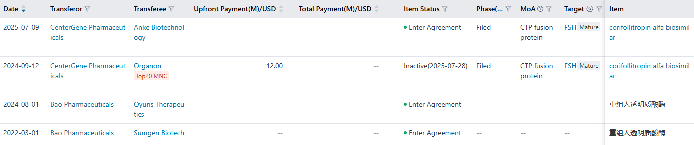 According to PharmCube's NextBiopharm® database, Bao Pharma and its subsidiaries have entered into four out-licensing agreements since last year. Click here to request a free trial for NextBiopharm®.