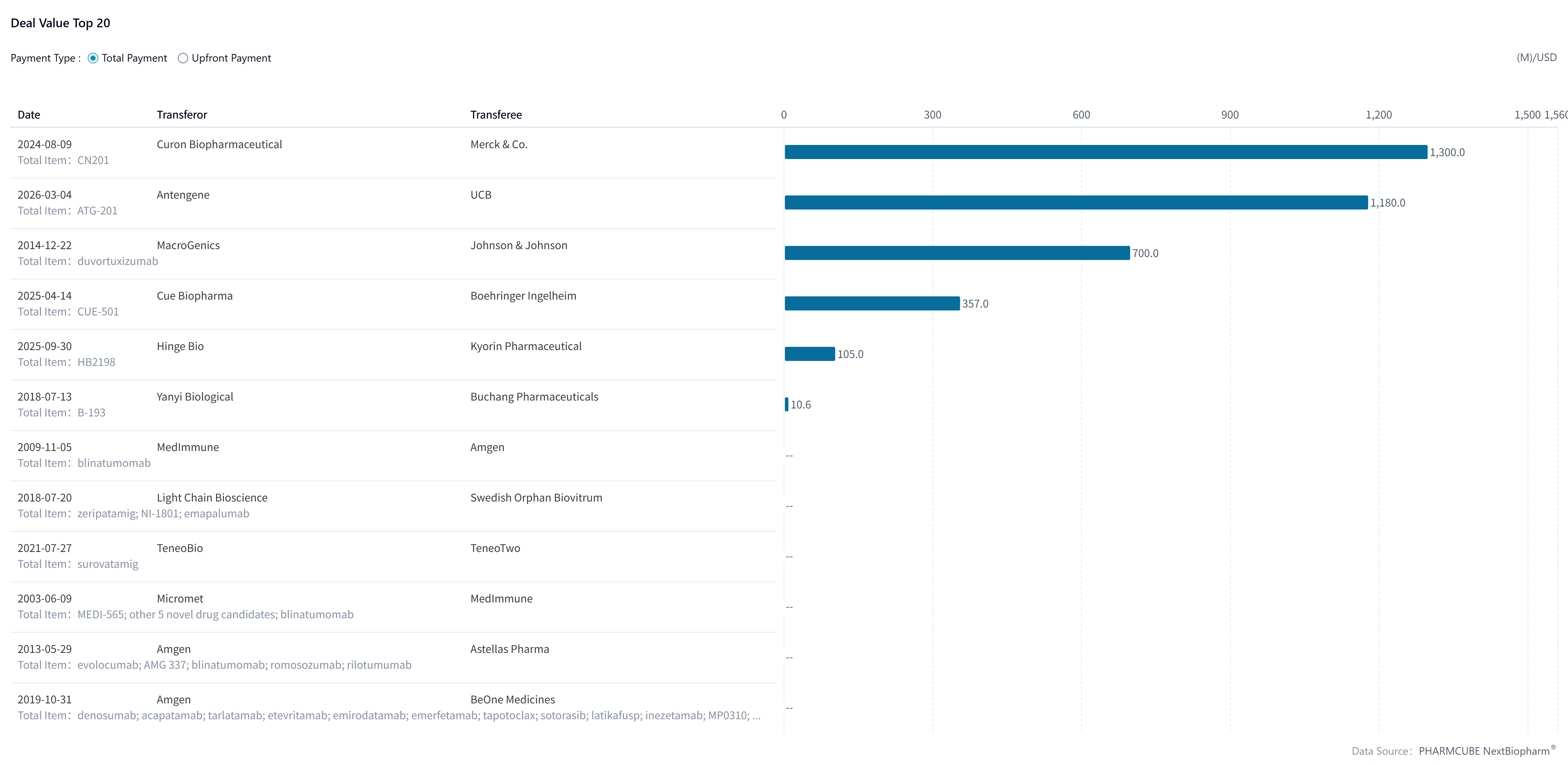 PharmCube's NextBiopharm® database shows that this is the second-largest deal for a CD19-targeted BsAb. Click here to request a free trial for NextBiopharm®.
