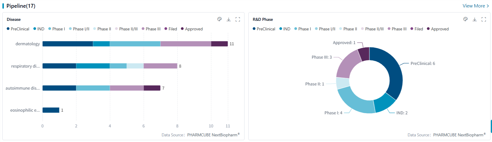 PharmCube's NextBiopharm® database shows that Qyuns' pipeline includes one approved product and three Phase III candidates across dermatology, rheumatology and gastroenterology indications, with QX031N being the most advanced respiratory asset. Click here to request a free trial for NextBiopharm®.