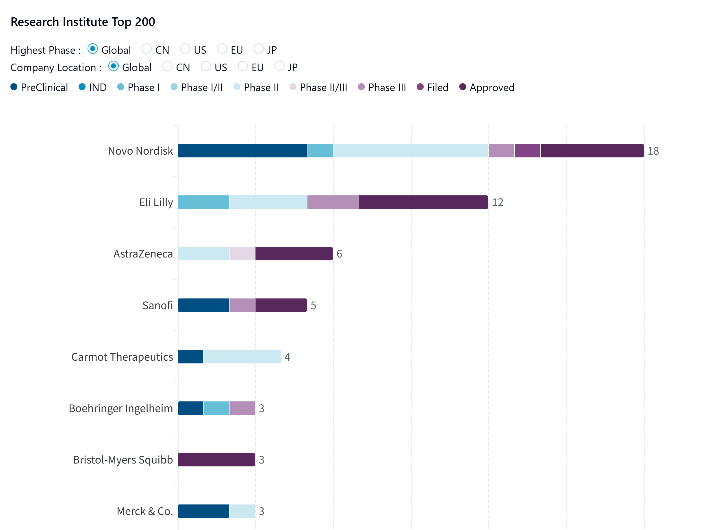 According to PharmCube's NextBiopharm® database, the GLP-1/1R race includes 13 Big Pharma companies and continues to be led by Novo Nordisk. Click here to request a free trial for NextBiopharm®.