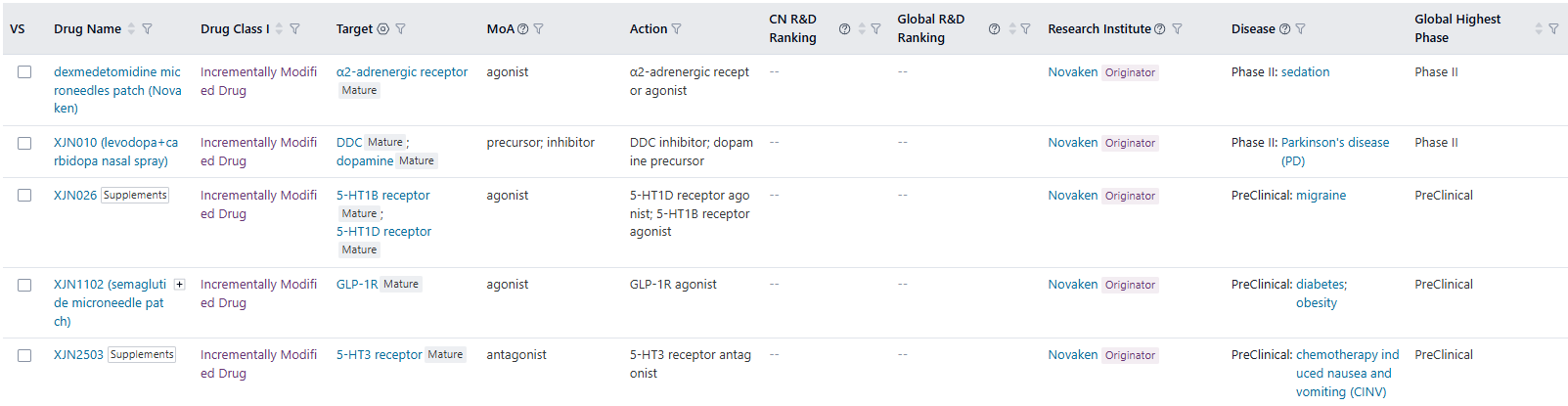 PharmCube's NextBiopharm® database lists five candidates in Novaken's pipeline. Click here to request a free trial for NextBiopharm®.