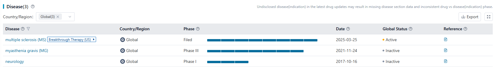 According to PharmCube's NextBiopharm® database, tolebrutinib's sales prospects rely solely in multiple sclerosis (MS) as development in non-MS indications has not been active in recent years. Click here to request a free trial for NextBiopharm®.