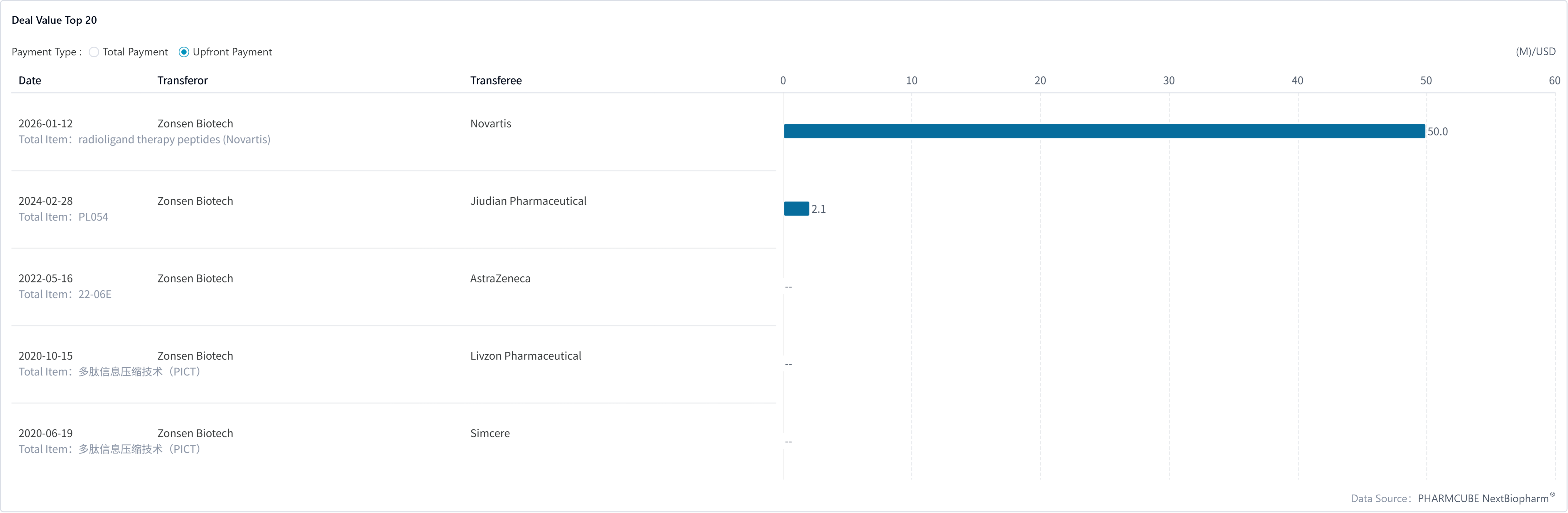PharmCube's NextBiopharm® database shows that this is Zonsen's fifth licensing deal and the second one with Big Pharma. Click here to request a free trial for NextBiopharm®.