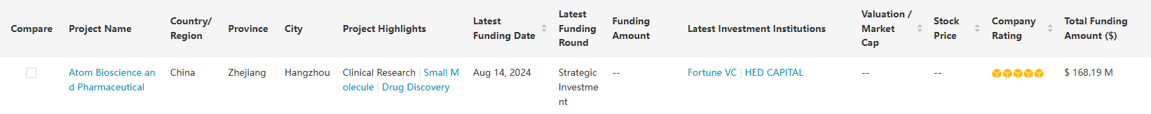 PharmCube's MedAlpha® shows that Atom last year received USD 168 million from a strategic investment. Click here to request a free trial for MedAlpha®.