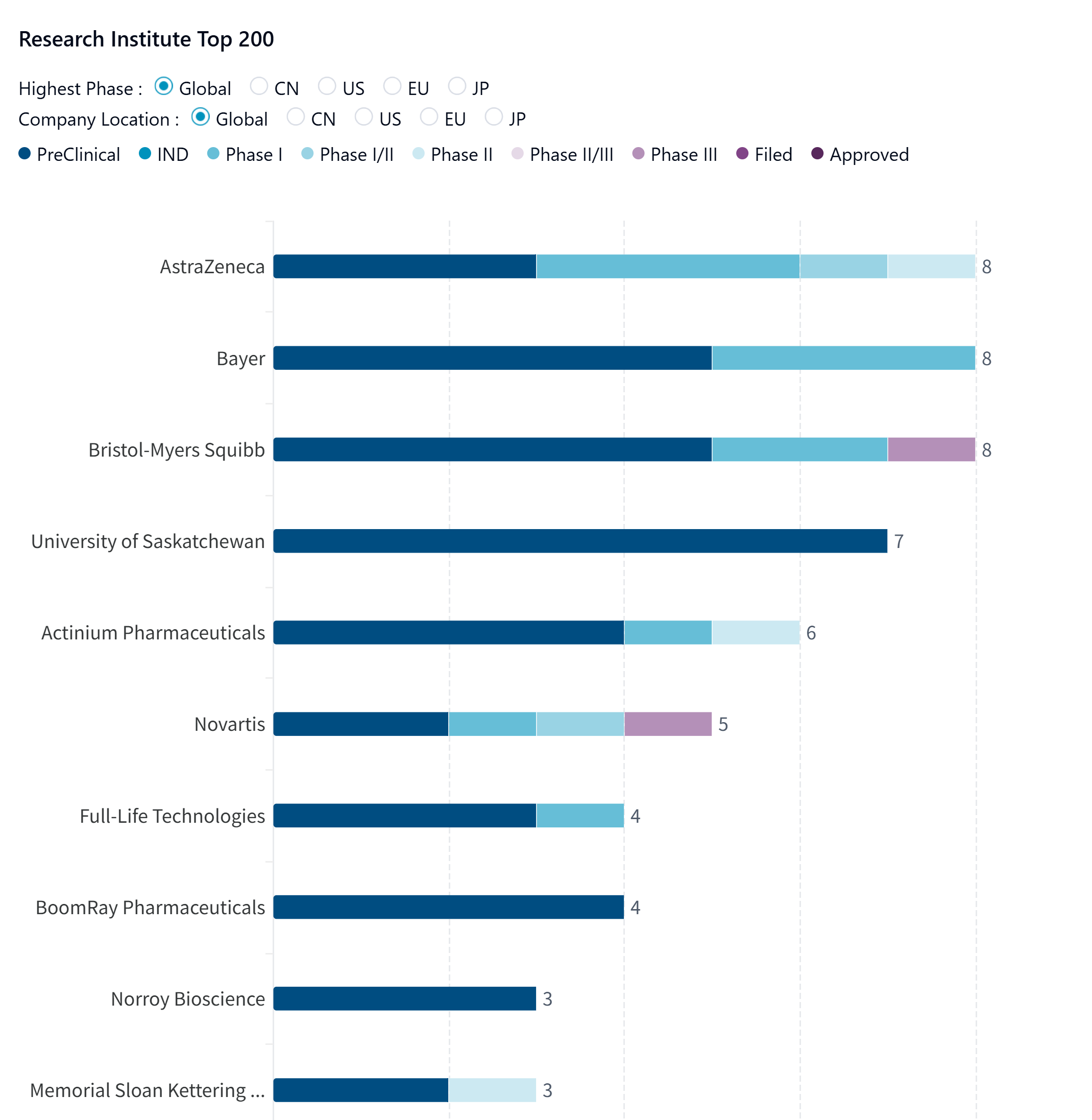 PharmCube's NextBiopharm® database lists over 70 developers of actinium-225-based drugs globally. Click here to request a free trial for NextBiopharm®.