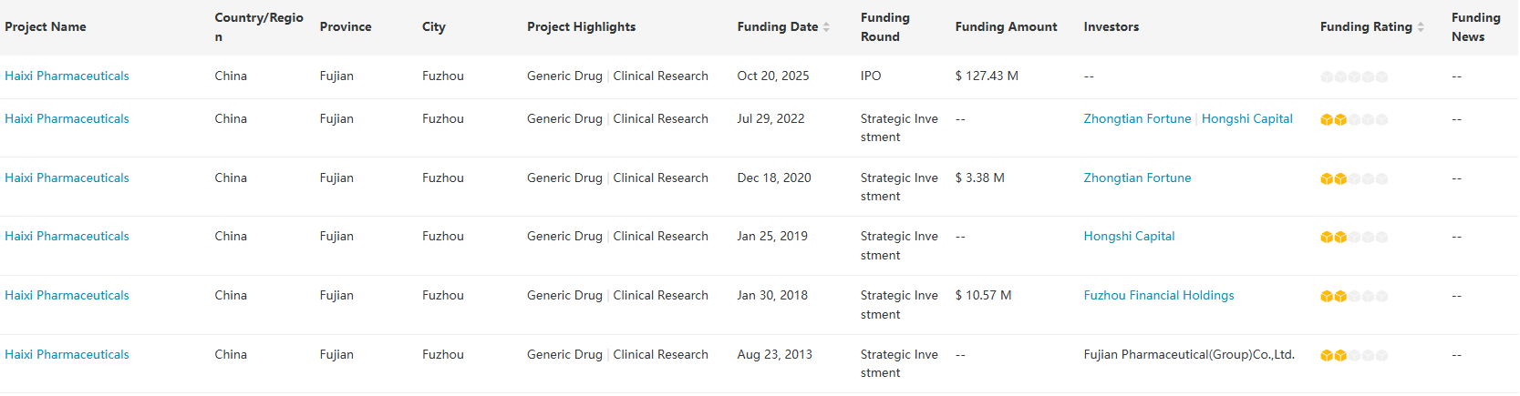 According to PharmCube's MedAlpha® database, Haixi received five strategic investments prior to its IPO. Click here to request a free trial for MedAlpha®.
