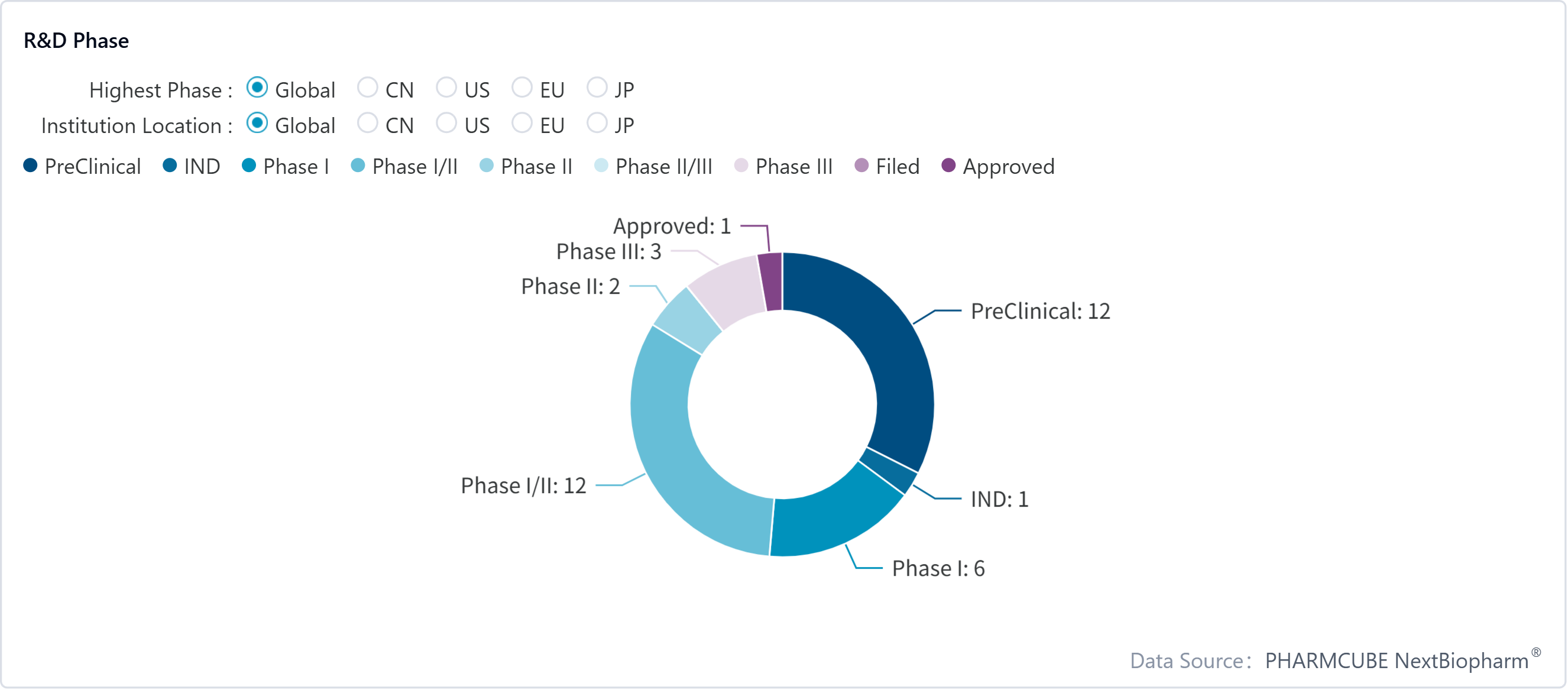 PharmCube's NextBiopharm® database lists a total of 37 drug candidates targeting PD-1/L1 and TGF-β, incluidng in Phase III trials. Click here to request a free trial for NextBiopharm®.