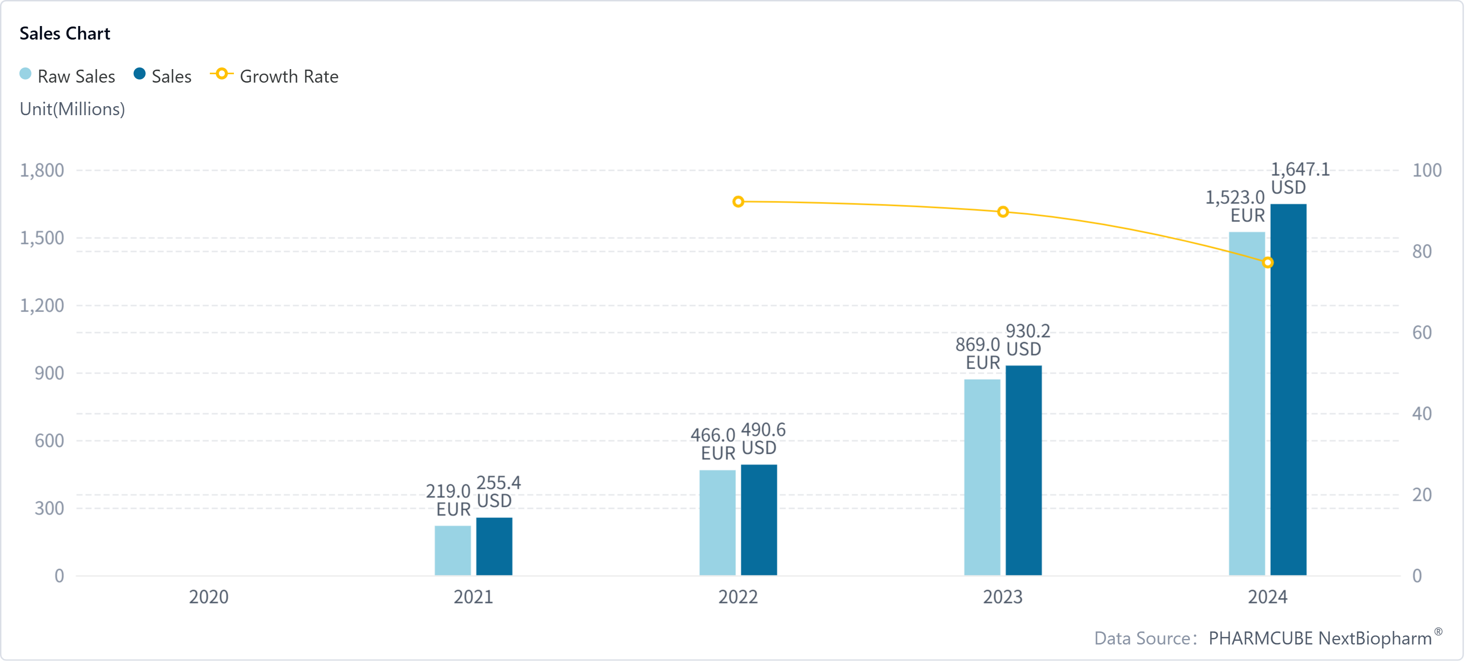 PharmCube's NextBiopharm® database shows that Nubeqa has consistently enjoyed double-digit growth since its 2021 launch. Click here to request a free trial for NextBiopharm®.