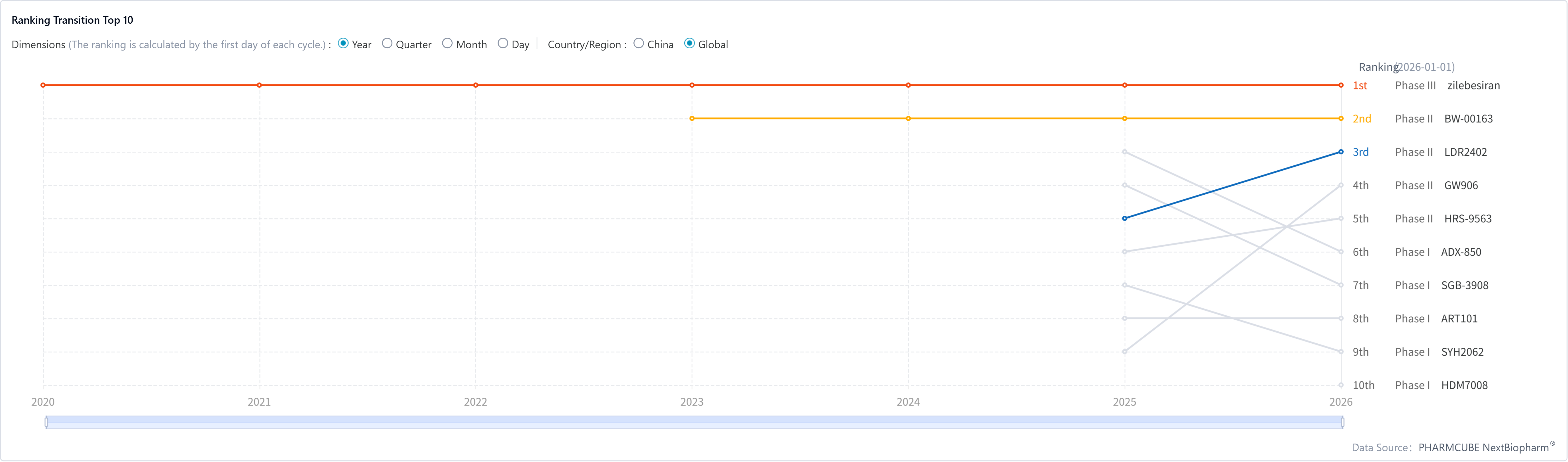 PharmCube's NextBiopharm® database shows that SAL0132 is the fourth-most advanced candidate among AGT-targeted RNAi therapies globally. Click here to request a free trial for NextBiopharm®.