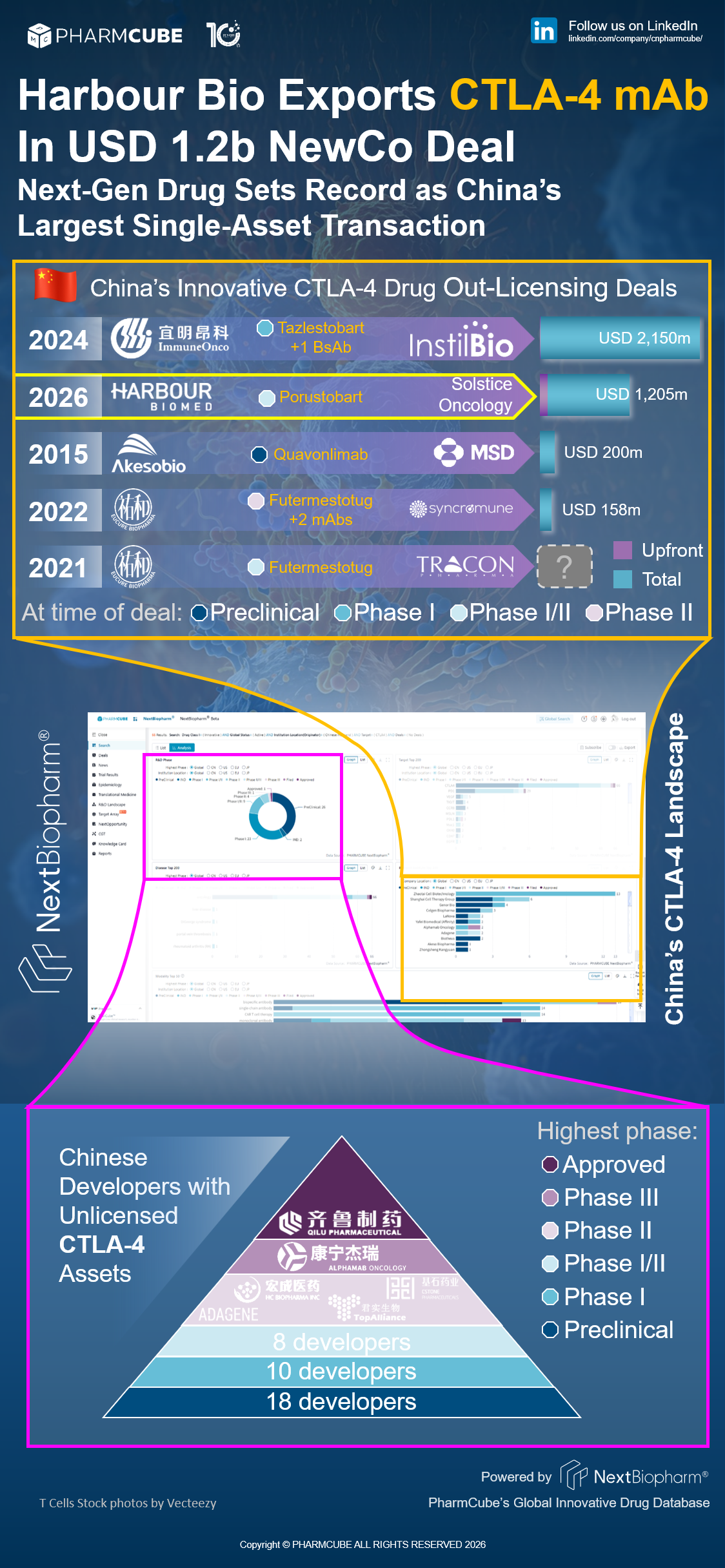 According to PharmCube's NextBiopharm® database, this represents China's second-largest out-licensing deal in the CTLA-4 space. Click here to request a free trial for NextBiopharm®.