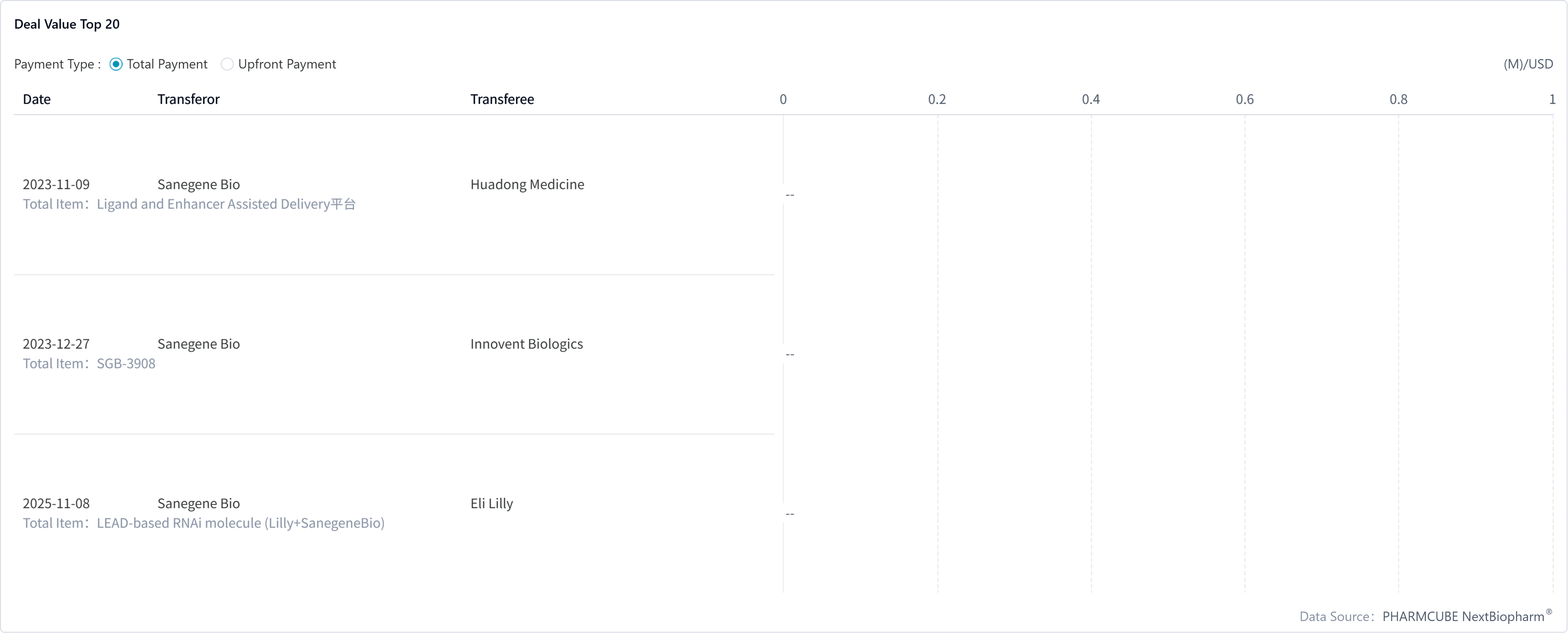 PharmCube's NextBiopharm® database reveals that Sanegene's agreement comes only one day apart from a similar deal with compatriot Huadong Medicine. Click here to request a free trial for NextBiopharm®.