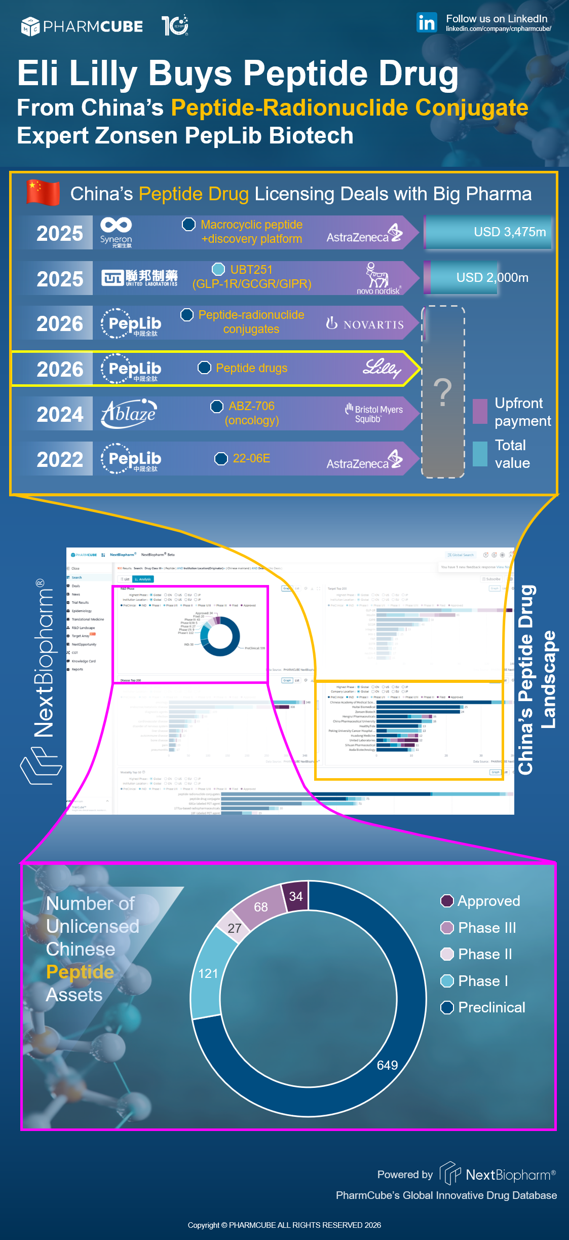 According to PharmCube's NextBiopharm® database, this is China's sixth peptide outlicensing deal with a Big Pharma company. Click here to request a free trial for NextBiopharm®.
