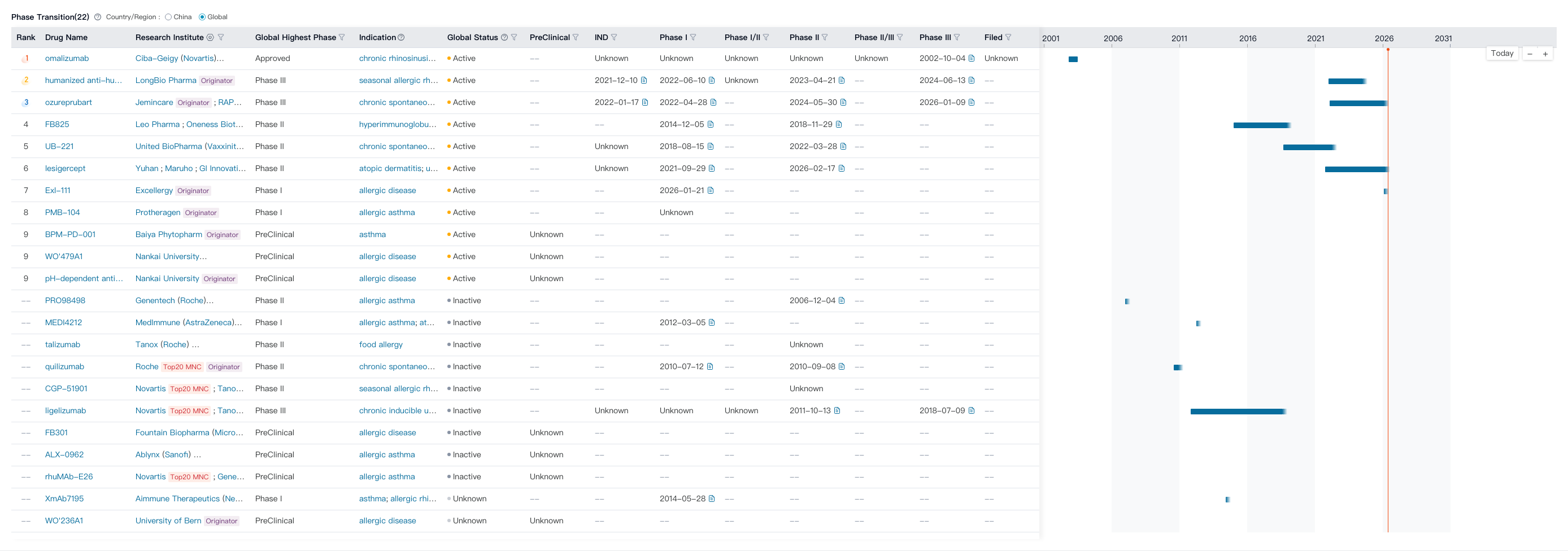 According to PharmCube's NextBiopharm® database, EXL-111 ranks 7th globally among IgE-targeted mAbs in terms of development. Click here to request a free trial for NextBiopharm®.