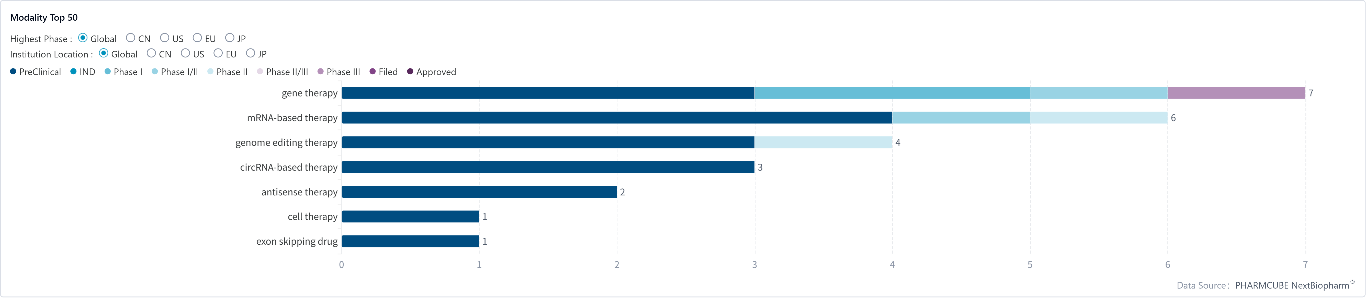 PharmCube's NextBiopharm® database shows that gene therapy is the most commonly used drug modality to target OTC. Click here to request a free trial for NextBiopharm®.