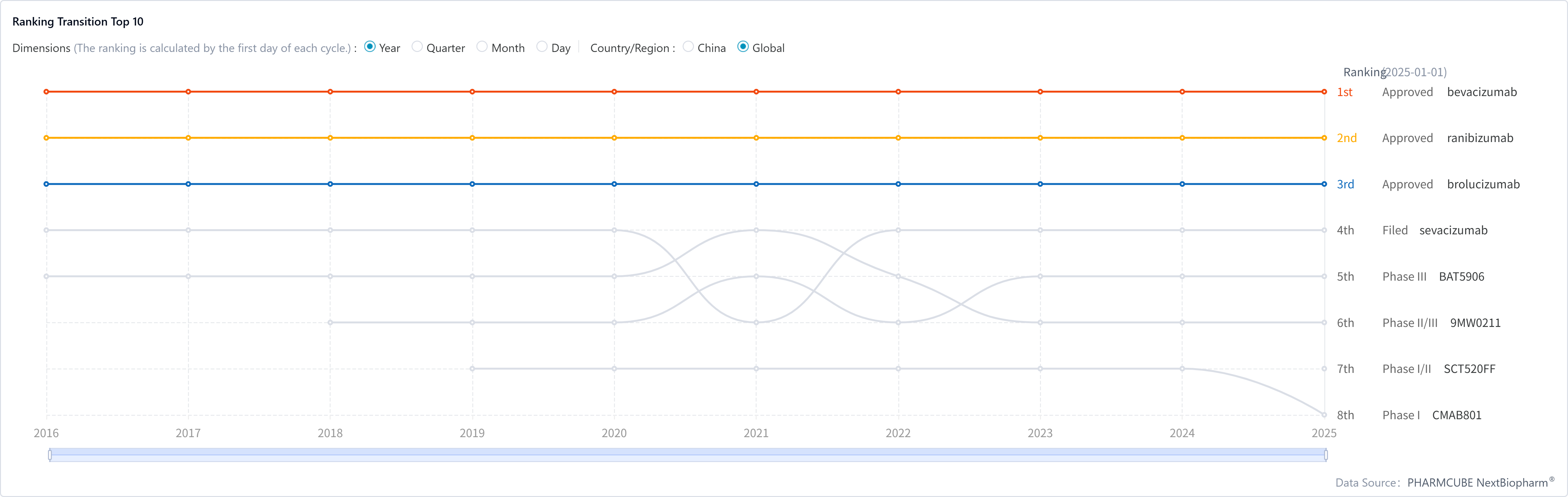 PharmCube's NextBiopharm® database shows that, if approved, BAT5906 will join with three other anti-VEGF mAbs launched to the global market, although only Novartis' ranibizumab and brolucizumab hold ophthalmic indications. Click here to request a free trial for NextBiopharm®.